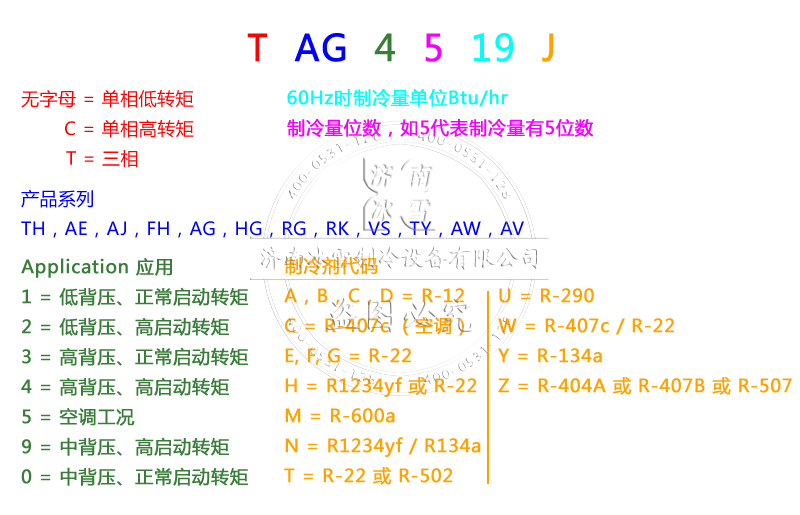 Tecumseh/泰康壓縮機命名規(guī)則: